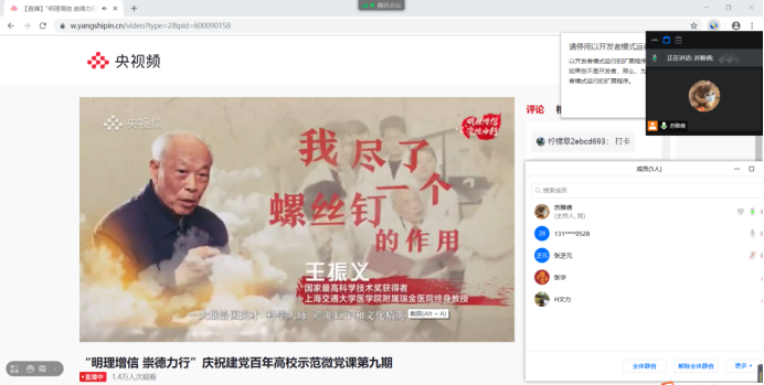 8月6日,“明理增信 崇德力行”庆祝建党百年高校示范微党课第九讲开讲,行政教辅党支部通过腾讯会议等多种方式组织支部成员学习。