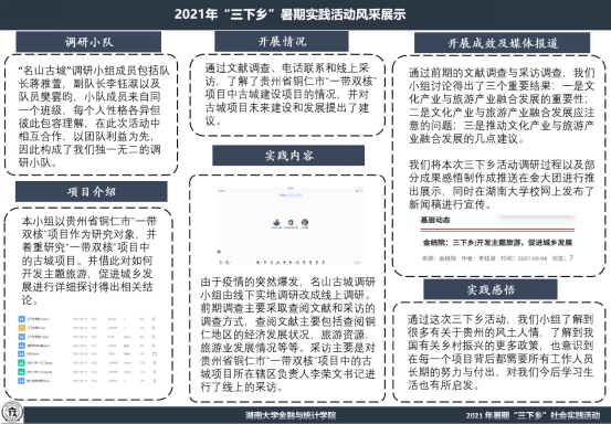 由于疫情的突然复燃,名山古城调研小组原定于线下的调研计划不得不调整为线上,重新确认调研方案后,三位小伙伴通过文献调查、电话联系和线上采访的方式,了解了铜仁市“一带双核”项目中古城建设项目的情况,并对项目未来建设和发展提出了建议。