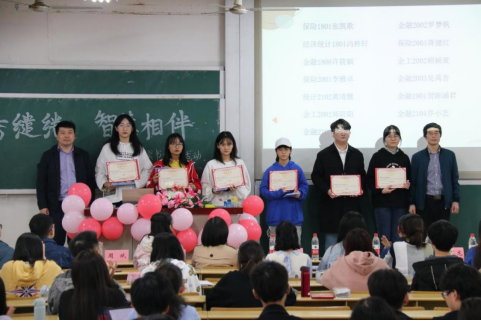 颁奖环节,主持人依次宣布参与奖、三等奖、二等奖、一等奖的获奖名单。领导嘉宾为获奖同学发放奖状和礼品,并合影留念。