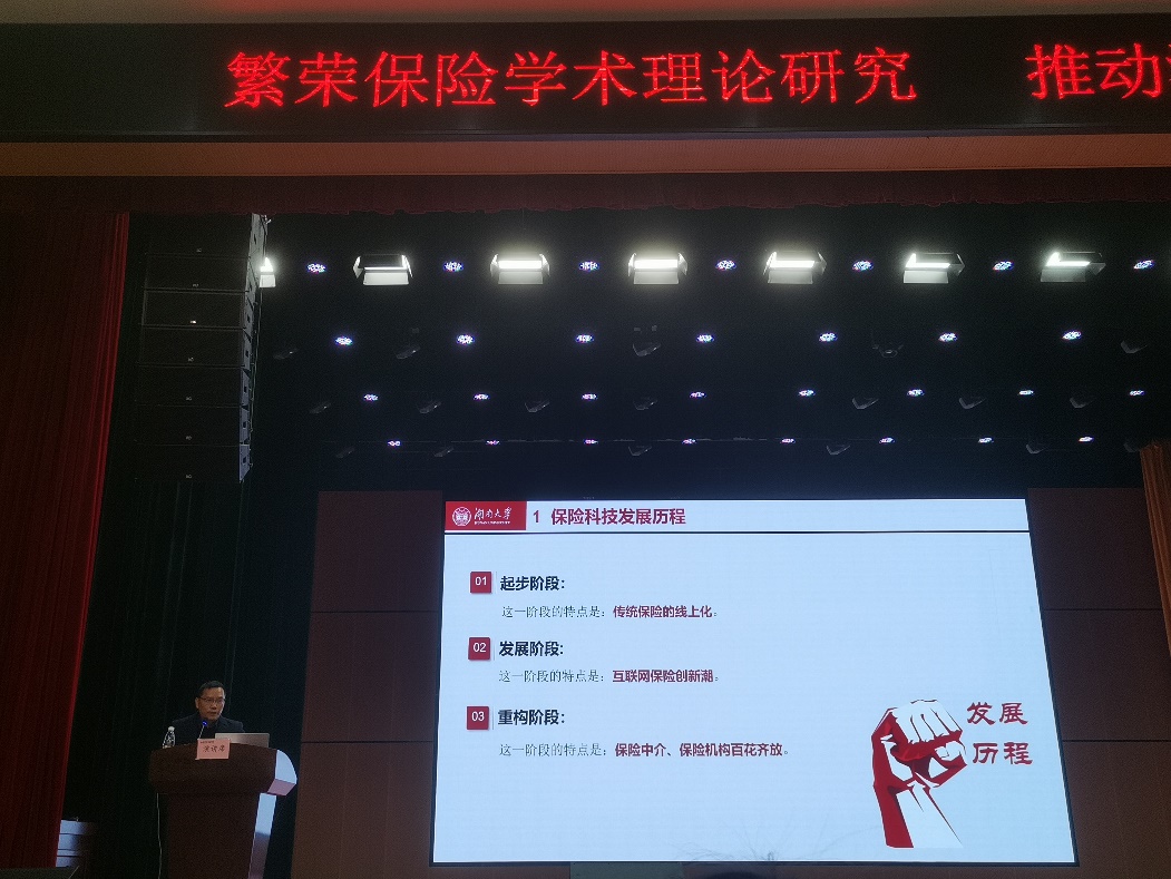 湖南省保险学会秘书长杨建雄主持会议,湖南省社科联副主席王和平、保险职业学院院长蒲彦君、 韩漫 陈迪红教授分别致辞。