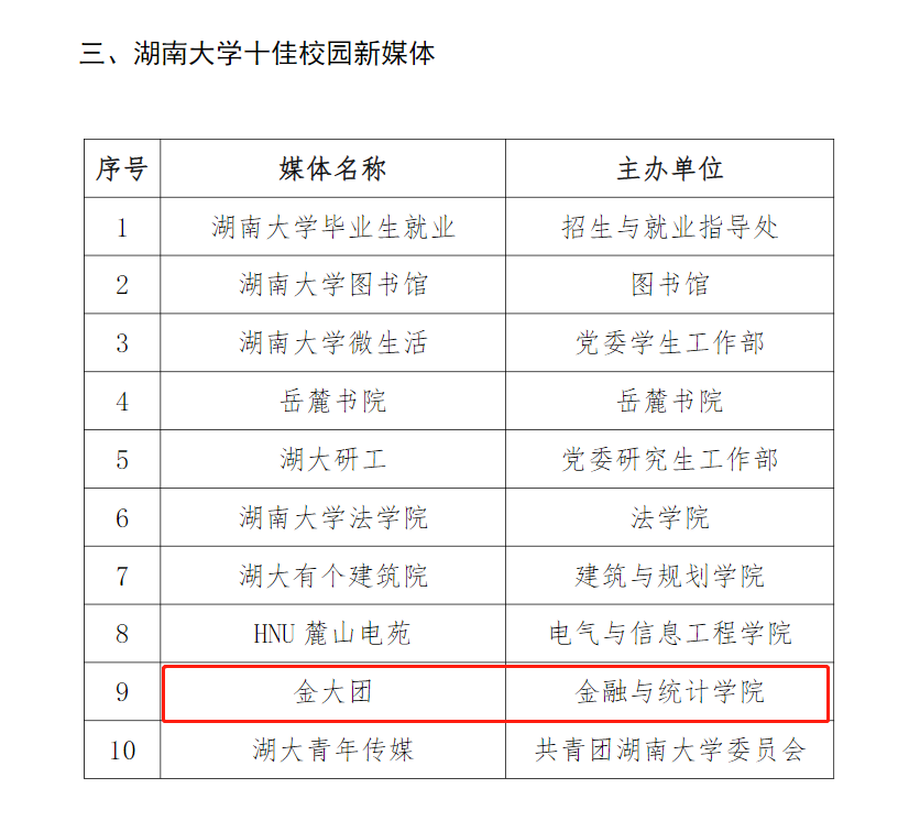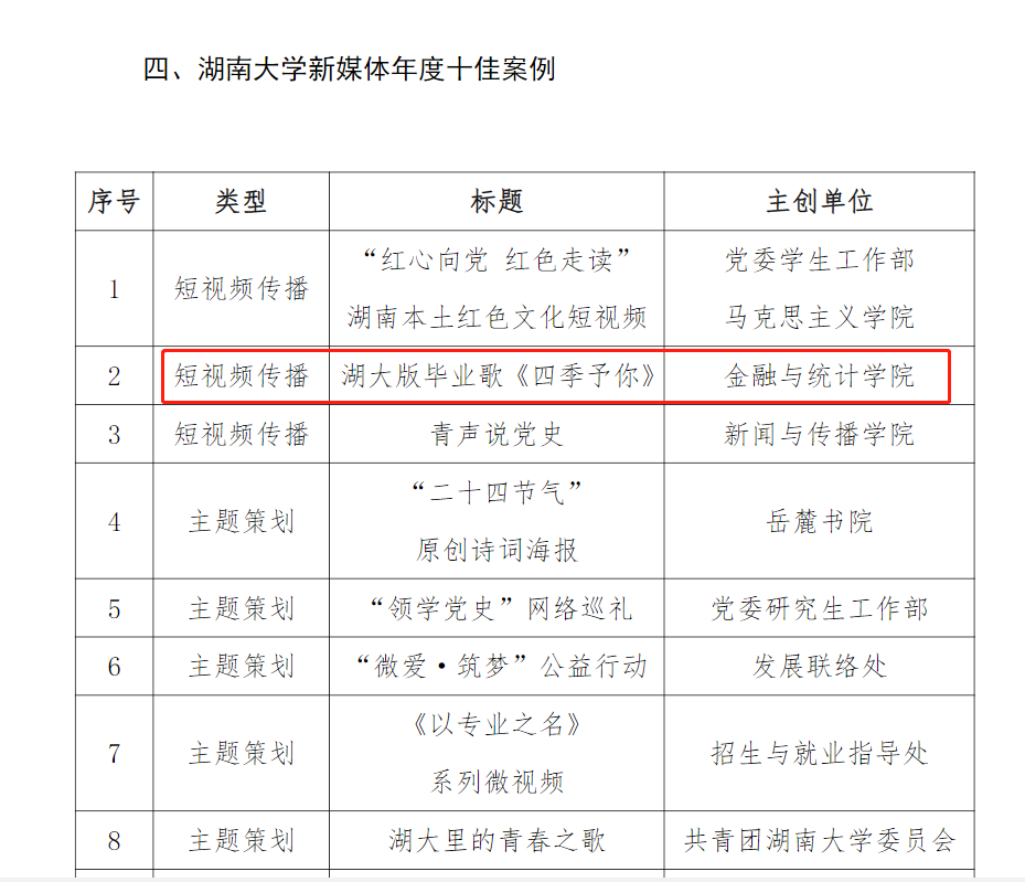 12月12日,“2021年度 韩漫 宣传思想工作先进单位”及先进个人评选、“第四届 韩漫 新闻奖”评选结果正式公布。 韩漫 收获学院获评2021年 韩漫 宣传思想工作先进单位、 韩漫 新闻工作先进单位,金大团公众号获十佳校园新媒体,湖大版毕业歌《四季予你》获新媒体年度十佳案例,侯文力老师获评宣传思想工作先进个人,周斌老师获评新闻工作先进个人等6个奖项。为学院进一步加强和改进宣传思想工作和服务学校“双一流”建设提供坚强的思想保证、舆论支持和文化动力。