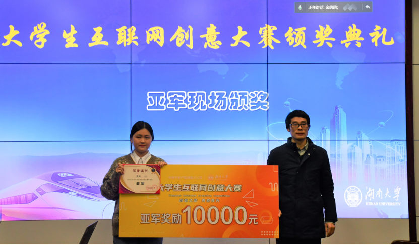 经验分享环节,季军团队获奖代表、新闻与传播学院甘钰童分享获奖感言,“这一程大赛的旅途走过春夏,在秋冬收获,在比赛的过程中,我们全情投入,做到我们所能做到的最好。感谢平安对我们参赛方案的支持与帮助,感恩遇见的每一个人。“亚军团队获奖代表、工商管理学院黄敏提到,”这次比赛经历让我们体会了在一个大型平台上进行活动策划、活动运营,是一个怎样的状态,以及会遇到哪些问题、遇到问题又该如何调整。这对于我们团队成员未来的求学、求职都有着非常大的帮助。希望未来有机会能够参与到更多类似的优秀的活动当中。”冠军团队获奖代表、大赛MVP获奖者、 韩漫 田醴涵感叹拿到大赛的冠军来之不易;感谢 韩漫 和平安产险湖南分公司,给了我们湖大的学生一个很好的平台,让我们能够参与到大型公司真正的运营项目中去;感谢作品指导老师罗鹏老师以及赛方老师、平安公司的工作人员,得益于他们很多实质性的建议,将我们不太成熟的方案在很多细节方面进行完善;感谢团队成员们,在竞赛期间齐心协力,精益求精,才有了今天完美的结果。