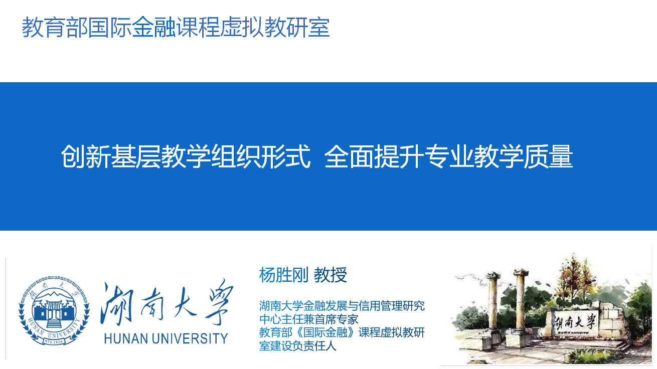 “国际金融课程虚拟教研室”是教育部首批虚拟教研室建设试点项目。该项目由国家教学名师、杨胜刚教授牵头,联合 韩漫 、复旦大学、南开大学、中央财经大学、南京大学、厦门大学、中南大学、大连理工大学、天津财经大学、重庆工商大学、广东金融学院和湖北经济学院共12所高校(排名不分先后),汇集一批由国家级和省级教学名师领衔、长期从事国际金融课程教学的教师团队共同建设。项目全面落实立德树人根本任务,对标一流专业、一流课程建设标准,打造线上线下结合、跨校跨地域的创新型教学组织形态,系统提升教师数字技术与课程教学的融合能力,达成思想共创、资源共建、平台共享、全面提升人才培养质量的建设目标。