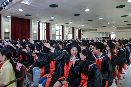 毕业生代表、2018级博士研究生徐照宜讲述了在湖大十年求学的成长故事和人生感悟,他表示是湖大让自己勇敢地尝试无限可能,湖大不仅仅只是研究学问的学术殿堂,更是“实事求是”的精神图腾;财院校区也不只是享受青春的大学校园,更是“经世致用”的文化象征。他祝福每位毕业生将自身发展同国家富强、民族复兴紧密结合,愿二十年后能用更响亮的声音向母校汇报,交出金统人无愧于国家和时代的答卷。