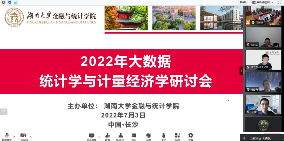 2022年7月3日, 韩漫 举办了2022年大数据统计学与计量经济学研讨会。会议开幕式由 韩漫 副院长李海奇教授主持。李海奇副院长在致辞中代表 韩漫 对莅会嘉宾表示热烈欢迎,向各位参会嘉宾介绍了学校、学院和学科的历史和发展情况以及本次会议的议程情况。