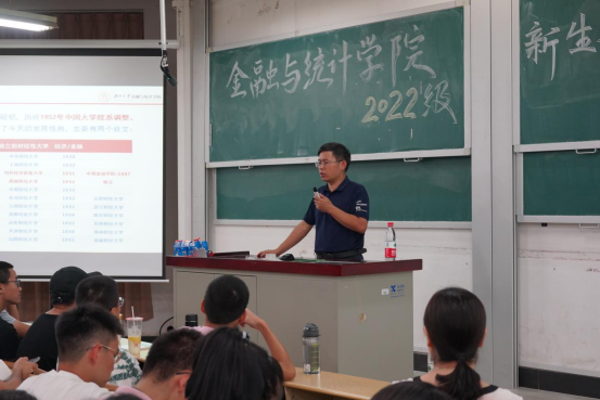 王修华以学院办学历史和学科沿革为切入点,展开讲解了专业设置、机构设置、师资力量、课程情况、科研成果、人才培养等方面内容,全面地给新同学上了进入 韩漫 的第一堂必修课。湖大金统学院学科办学历史悠久,金融学科是中国人民银行首批重点建设学科、国家“211工程”重点建设学科。金融学科与统计学科是国家“985工程”哲学社会科学创新基地的主要支撑学科、学校“双一流”建设的主要支撑学科。享有“千年学府、金融黄埔”的美誉,是国内高校金融与统计专业人才培养的重要基地之一。