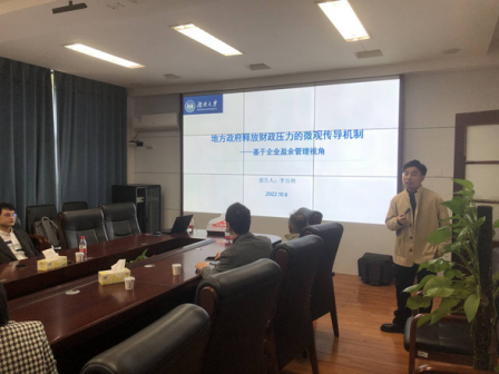 研讨会上,李万利老师做了主题为《地方政府释放财政压力的微观传导机制——基于企业盈余管理视角》的学术报告。在经济社会与日常生活中,企业作为地方经济发展的微观市场主体,必然会成为地方政府释放财政压力的直接作用对象。李万利老师基于企业盈余管理视角,从扩大财源和转嫁支出两个维度系统揭示地方财政压力加剧背景下地方政府与微观企业之间的互动行为。李万利老师经过研究发现,地区财政压力会影响企业的盈余管理行为,降低其下调和上调盈余管理的程度;同时机制分析表明,地方政府在财政激励下加强税收征管会促使企业盈余管理行为有所收敛,且企业为避免成为政策负担转嫁对象而出于“藏富”动机也会减少向上的盈余管理。进一步研究显示,上述效应在地方政府干预能力和意愿较强的地区表现更突出,且在国有、大规模及盈利较好等更易成为财政压力转移承载主体的企业中作用更明显。此外,为应对地方财政压力带来的不利影响,企业更有可能对外发布负面盈余警告。该研究深化了对地方政府财政压力作用于微观企业的内在逻辑和传导方式的理论认知,并为进一步推进财政体制改革、有效化解地方财政压力以及确保减税降费等政策稳步推进提供了重要政策参考。