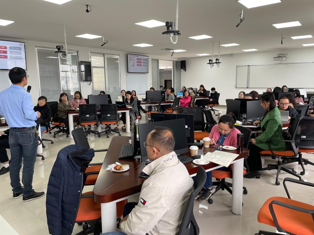 在互动环节,参会的老师们积极与刘强教授交流讨论知识图谱运用于课堂教学的细节内容。