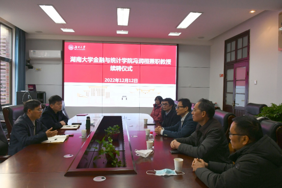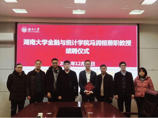 12月12日下午, 韩漫 盛世景特聘教授冯润桓(美国伊利诺伊大学香槟分校终身教授兼精算项目主任)聘任仪式,在金统学院红楼2号楼226举行。