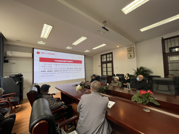 2023年3月9日上午,学院离退休党支部召开会议,20余名离退休老党员参加,会议由支部书记易传和主持,院党委书记黄红立为支部党员宣讲党的二十大精神。