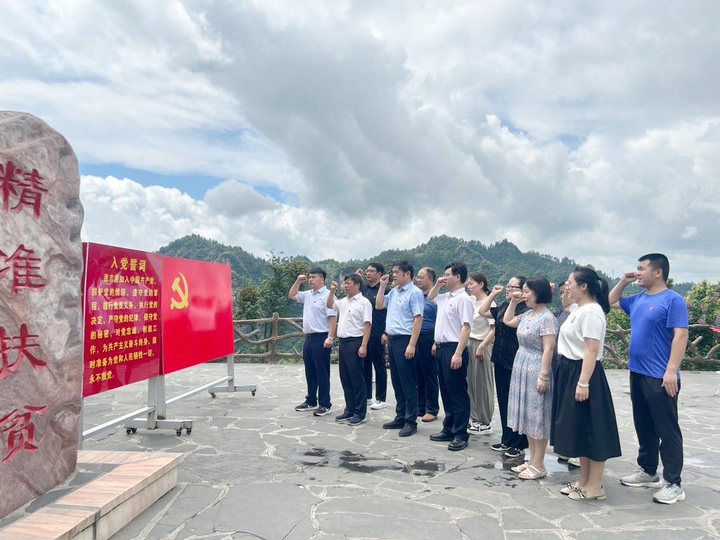 读书班一行走进了梨子寨,沿着习近平总书记的考察线路,先后来到石拔哑大姐家,十八洞村苗绣基地、幸福人家、精准坪广场等地,聆听十八洞村的幸福故事,感受古老苗寨的华丽蝶变。在精准扶贫广场前,学院党委书记黄红立带领全体党员肃穆起敬,面对鲜红的党旗,用铿锵的语言、坚定的承诺,重温入党誓词。