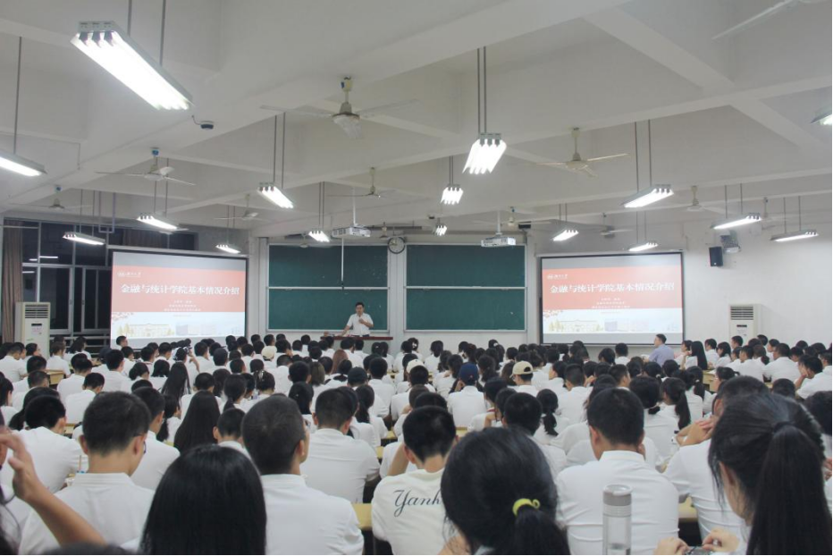 王修华院长首先对全体新同学加入金统大家庭表示热烈的欢迎,他从学科沿革、机构设置、师资队伍、科学研究、人才培养、学生工作等几个方面对学院进行了全面而又系统的介绍,加强了同学们对学院的初步了解。接下来,王院长结合《平凡的世界》《习近平的七年知青岁月》《觉醒年代》《潜伏》等优秀书籍与电视作品,畅谈如何度过一个充实而又有意义的大学生涯,并寄语同学们要做新时代“四有”大学生:一是有理想,做“眼中有光”的新时代大学生。是理想成熟的重要时期,远大的理想是大学生成长成才的前进动力和精神支柱,人生可以有很多的理想,但人生最重要的理想要同祖国和人民联系在一起。他勉励同学们树立正确的的世界观、人生观、价值观,要把个人“小我”的理想融入到中华民族伟大复兴的“大我”梦想之中,与时代同向、与祖国同行。二是敢担当,做“肩上有责”的新时代大学生。担当责任是中华传统优秀文化的精髓之一,是大学生的必修课。一代人有一代人的担当与使命,当代大学生要把握时代际遇,胸怀“国之大者”,努力学好专业知识,夯实根基,要积极参与创新创业活动、“三下乡”社会实践活动、国情调研活动,培养担当精神。三是肯奋斗,做“脚下有路”的新时代大学生。新时代是奋斗者的时代,奋斗是人生永恒的主题。我们既要仰望星空,也要脚踏实地。当代大学生在学习上要刻苦钻研,不畏艰难,孜孜以求,努力练就过硬本领。大学生现在普遍过着比较优越的生活,但肯吃苦、能吃苦的优良传统不能丢,只有“艰难困苦”才能“玉汝于成”。四是讲纪律,做“心中有尺”的新时代大学生。讲纪律守规矩是大学生的基本准则,也是人格成熟的重要标志。无论是在课堂上、在寝室里,还是在考试中,在交往中,同学们要遵纪守规。他告诫同学们要有敬畏之心,不越底线、不碰高压线,争做讲纪律守规矩的表率。