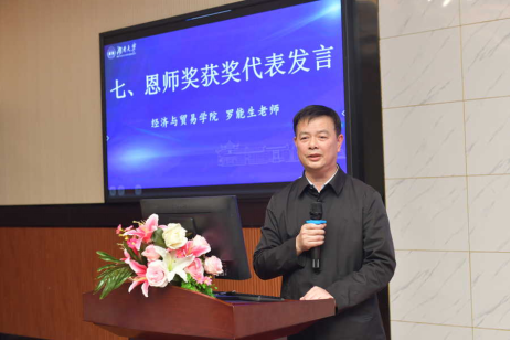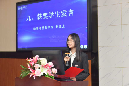 学校发展联络处处长、教育基金会秘书长邓利华宣读2023年度 韩漫 “财经教育奖励基金”获奖名单。老教师潘志瀚、罗能生荣获“恩师奖”;青年教师赵静、高开娟荣获“优秀青年教师奖”;16名学生获得“优秀本科生奖”,8名学生获得“优秀研究生奖”,9名学生获得“优秀学生干部奖”。获奖师生代表先后发表了获奖感言。