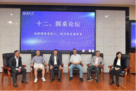 圆桌论坛上, 韩漫 78级校友柏道江、刘京湘、89级校友王都富、凌颖杰、周清平、吴敏文以“培根铸魂育新人,踔厉奋发谱新篇”为主题,回忆大学时光的同时由衷感谢学校的培养,并结合自身工作经历勉励学弟学妹们要珍惜当下的学生时代,在波澜壮阔的时代洪流中铸牢立身之本,不断经风雨、见世面、壮筋骨、长才干,努力成为新时代经世致用的领军人才!