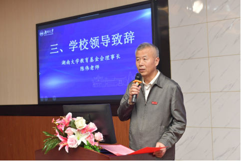 学校教育基金会理事长陈伟对“财经教育奖励基金”的设立给予高度肯定。他指出校友的这份爱心不仅是对母校的回报感恩,更是培养经世致用人才的助推器。同时他也希望同学们要关心国家发展,在大有可为的时代,交出湖大人的青春答卷。