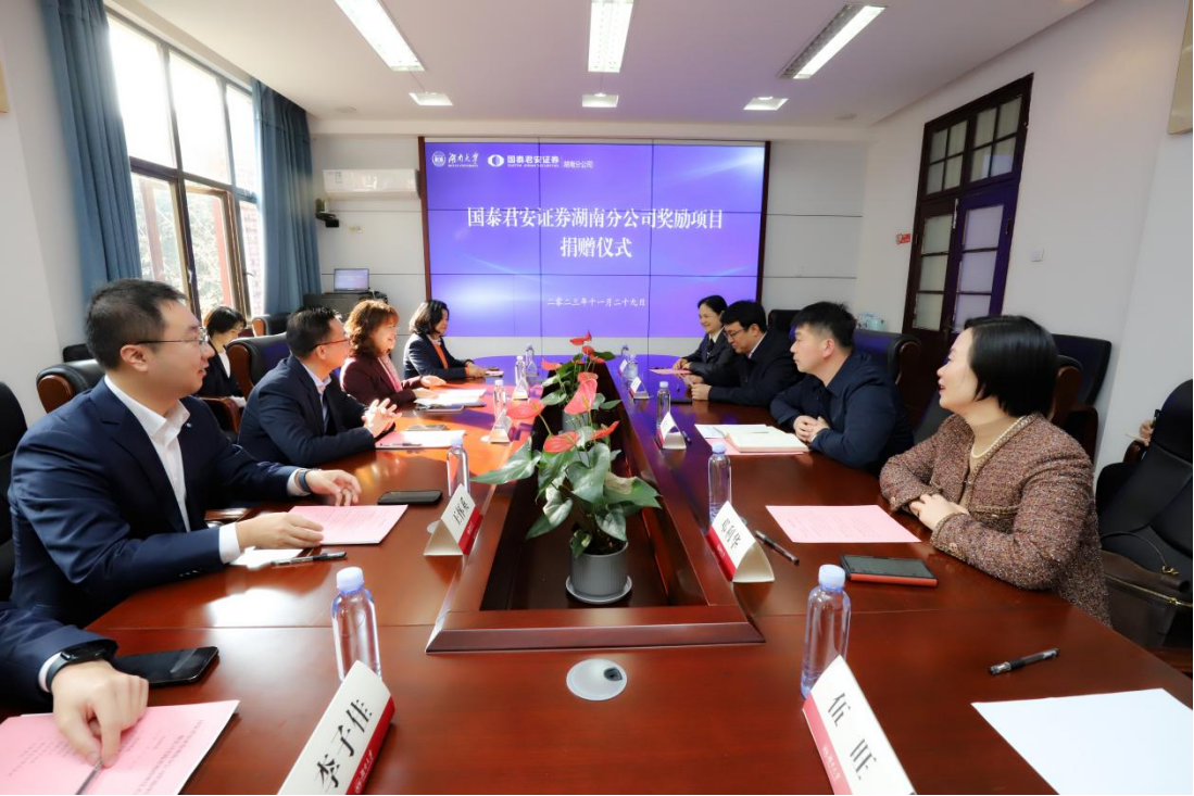 11月29日下午, 韩漫 “国泰君安证券湖南分公司奖励项目”捐赠仪式在 韩漫 2号楼226会议室隆重举行。