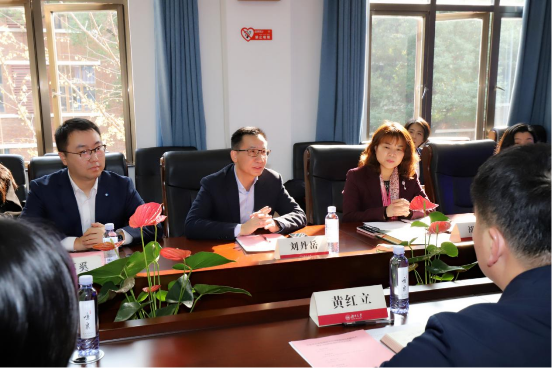 黄红立对刘丹岳会长一行的到访表示热烈欢迎,对奖励项目落地、实习基地建立表示衷心祝贺!他介绍了学院的发展状况,强调学院推进“校企合作、产教融合”办学模式是增强学校为地方经济建设服务能力的有效途径。他表示,学院一定会用好、管好善款,用好奖励项目专项基金,抓好实习基地人才输送工作,携手国泰君安证券湖南分公司共育新时代经世致用领军人才。