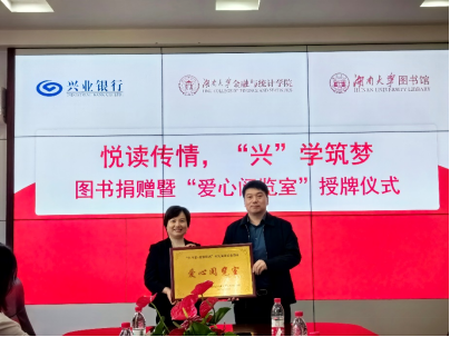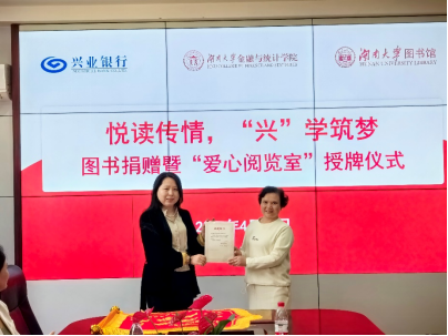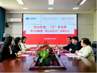 4月23日下午, 韩漫 、 韩漫 图书馆与兴业银行长沙分行“悦读传情,兴学筑梦”图书捐赠暨“爱心阅览室”授牌仪式在财院校区红楼2号楼226会议室举行。