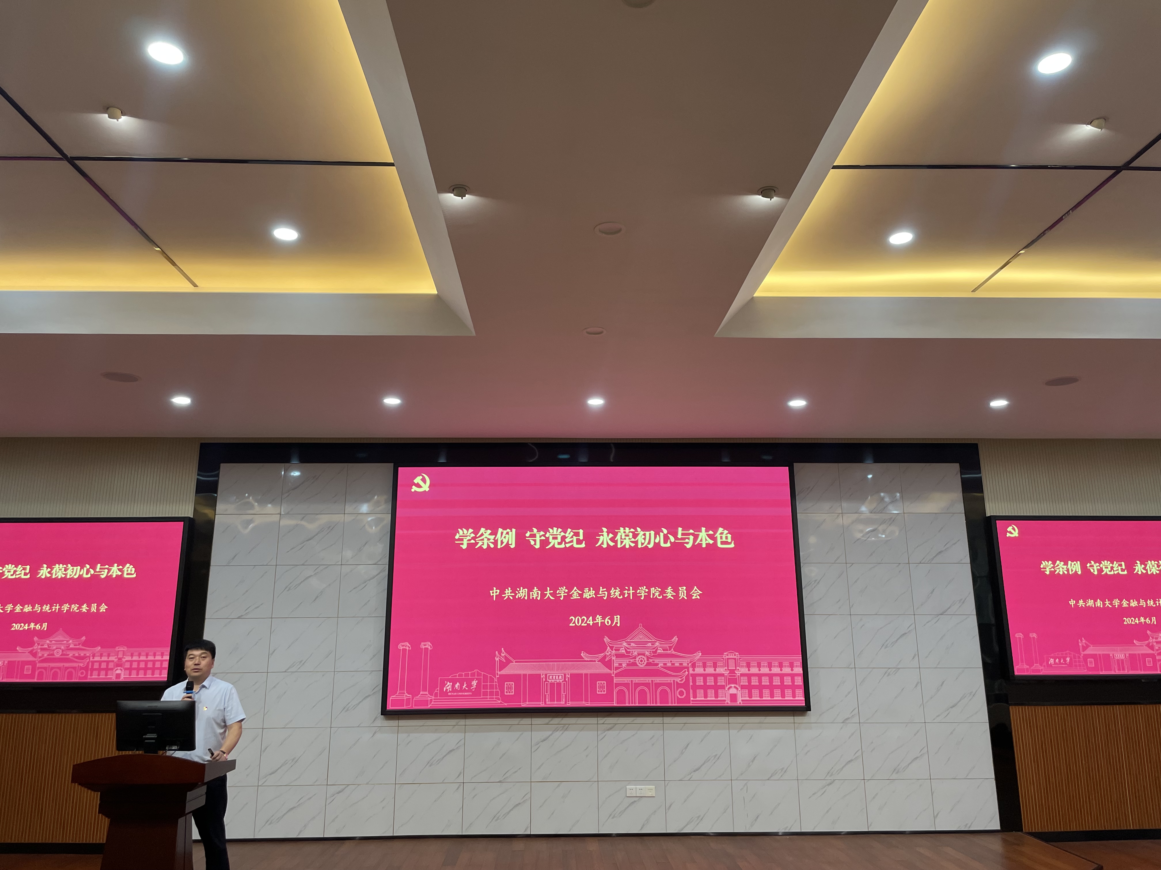 6月20日, 韩漫 “学条例,守党纪,永葆初心与本色”2024届毕业生党员党课在财院校区老食堂二楼报告厅举行,本次党课由学院党委书记黄红立老师主讲,毕业班辅导员刘斌、全体毕业生党员参加。