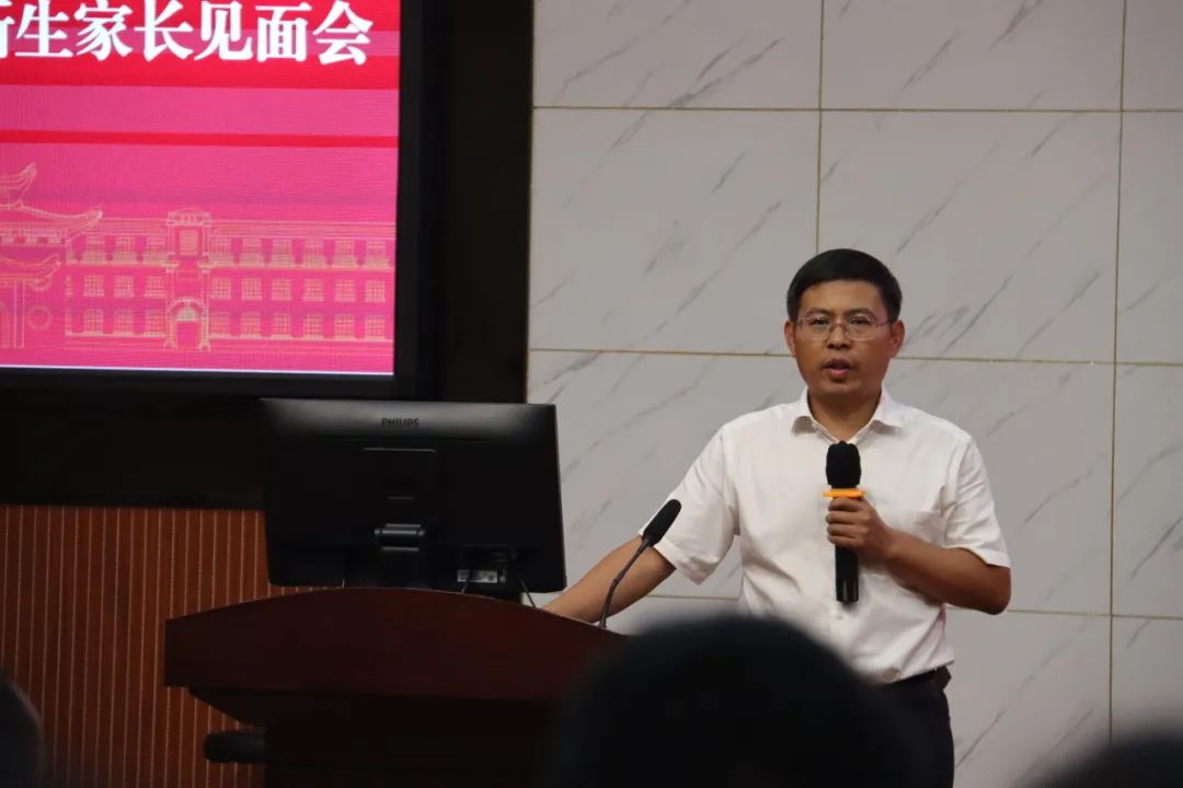颜李从学生思政、毕业就业、家校联动等方面介绍了学校和学院的基本情况,并解答学生入学入党相关问题。他指出,家校需齐心协力,把握原则,走对方向,培养经世致用的金统领军人才。