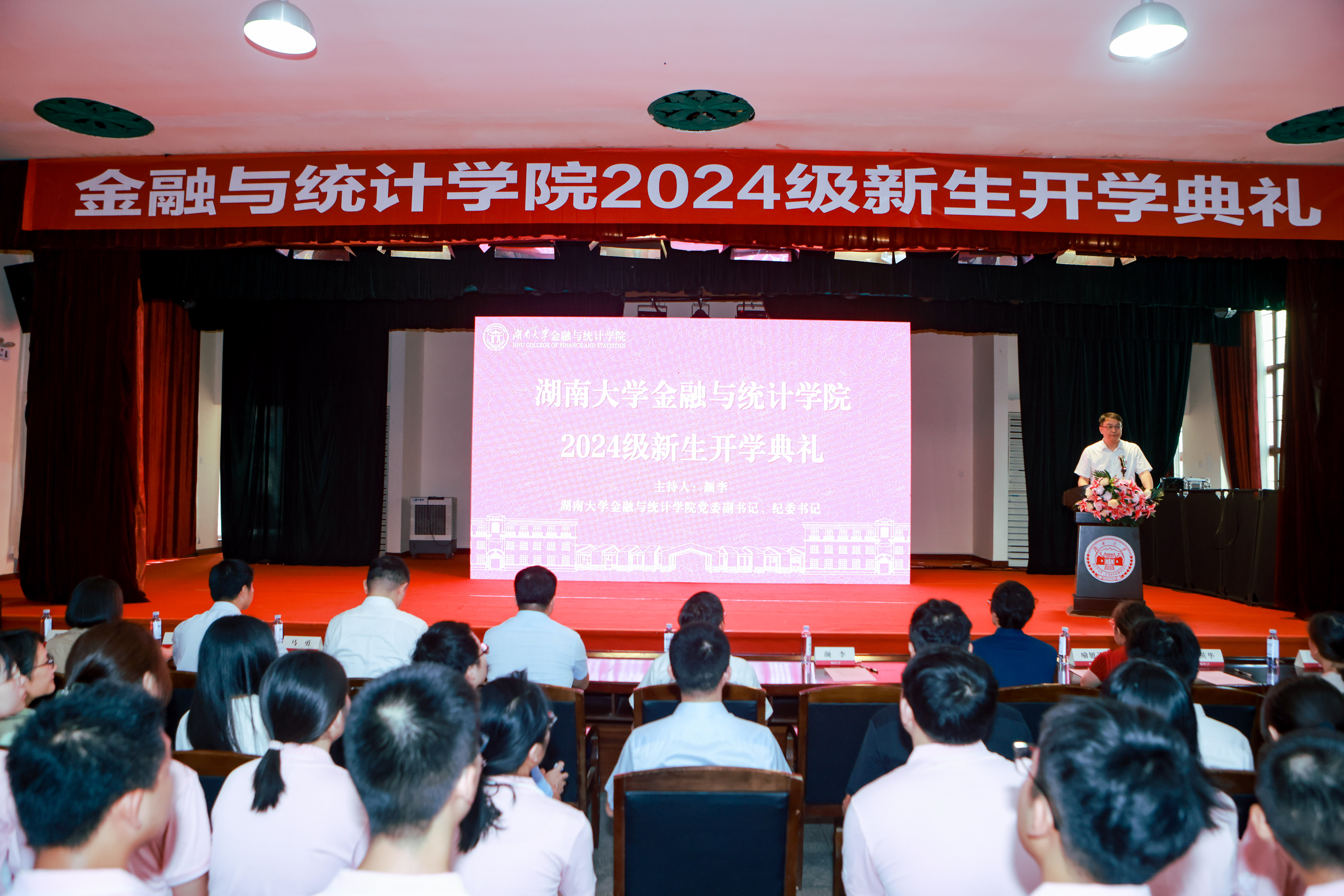 2021级金融工程本科生雷思齐、2024级精算学本科生郑紫怡、2024级金融学博士研究生梁中旗等在校生代表、本研新生代表分别发言,表达了他们在湖大金统求学求知的喜悦和对未来学习科研的期待,希望大家注重实践、平衡心态、担当奉献,树立德笃行之志,做经世济民之人,在金融统计的广阔天地里书写青春新篇章。