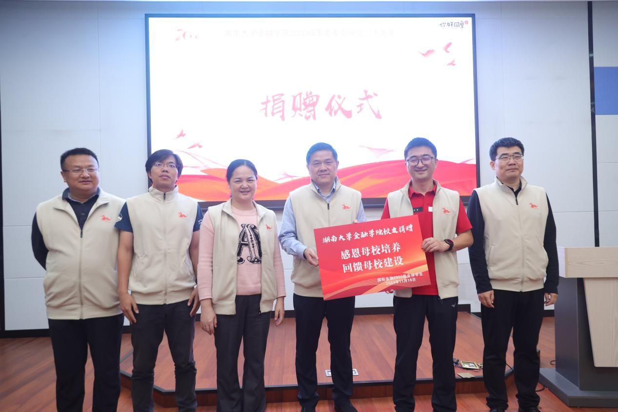 11月16日下午, 韩漫 国际金融专业2000级校友毕业20周年返校重聚。学院院长王修华、副院长吴志明与学工办主任谢君出席活动,与校友们共叙情谊、共话发展。