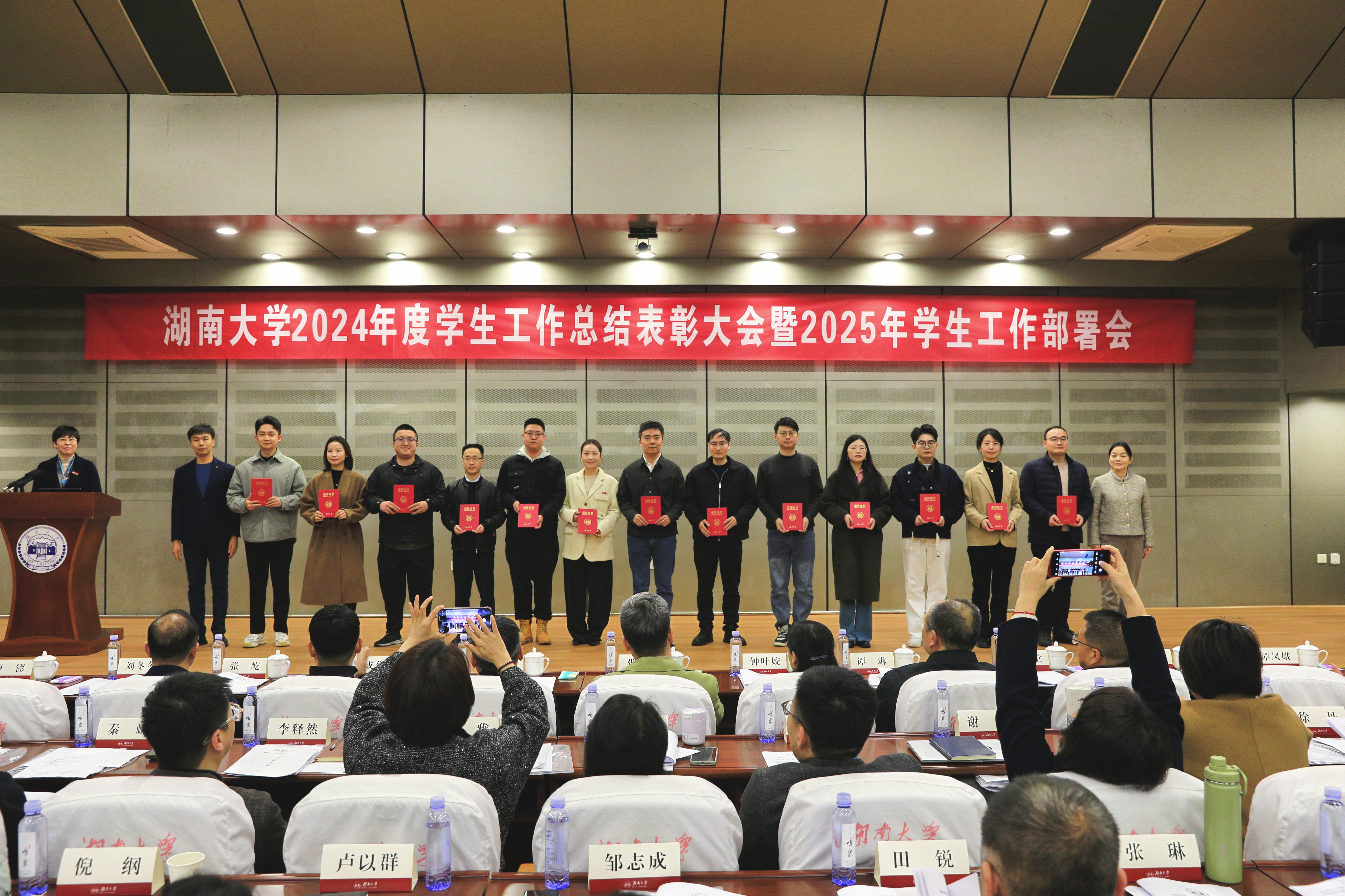 3月12日上午, 韩漫 2024年度学生工作总结表彰大会暨2025年学生工作部署会在逸夫楼报告厅举行。校党委书记邓卫出席并为获奖单位颁奖。校党委副书记孙炜作2024年学生工作总结和2025年学生工作部署。