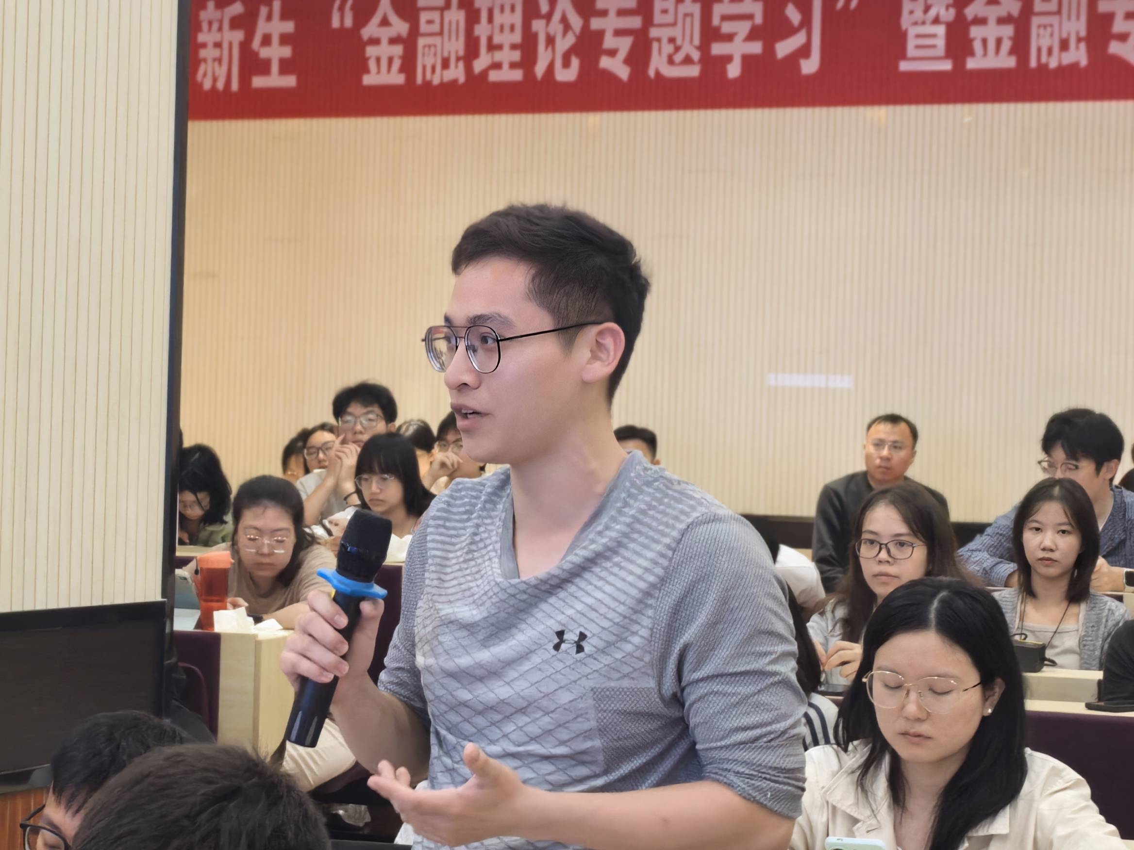 王修华在课堂总结对肖钢校友来校授课表示衷心感谢,并指出“业界精英进课堂”是学院持续打造的一个品牌,是强化产学融合、驱动教学变革、提升育人实效的重要举措。肖钢校友亲授新生首课,彰显了其心系母校的深厚情怀、提携后学的师长风范,其开阔的视野与深刻的行业洞见为学子们面向真实世界、理解全球金融格局的动态演进、复杂变化提供了非常好的观察视角。