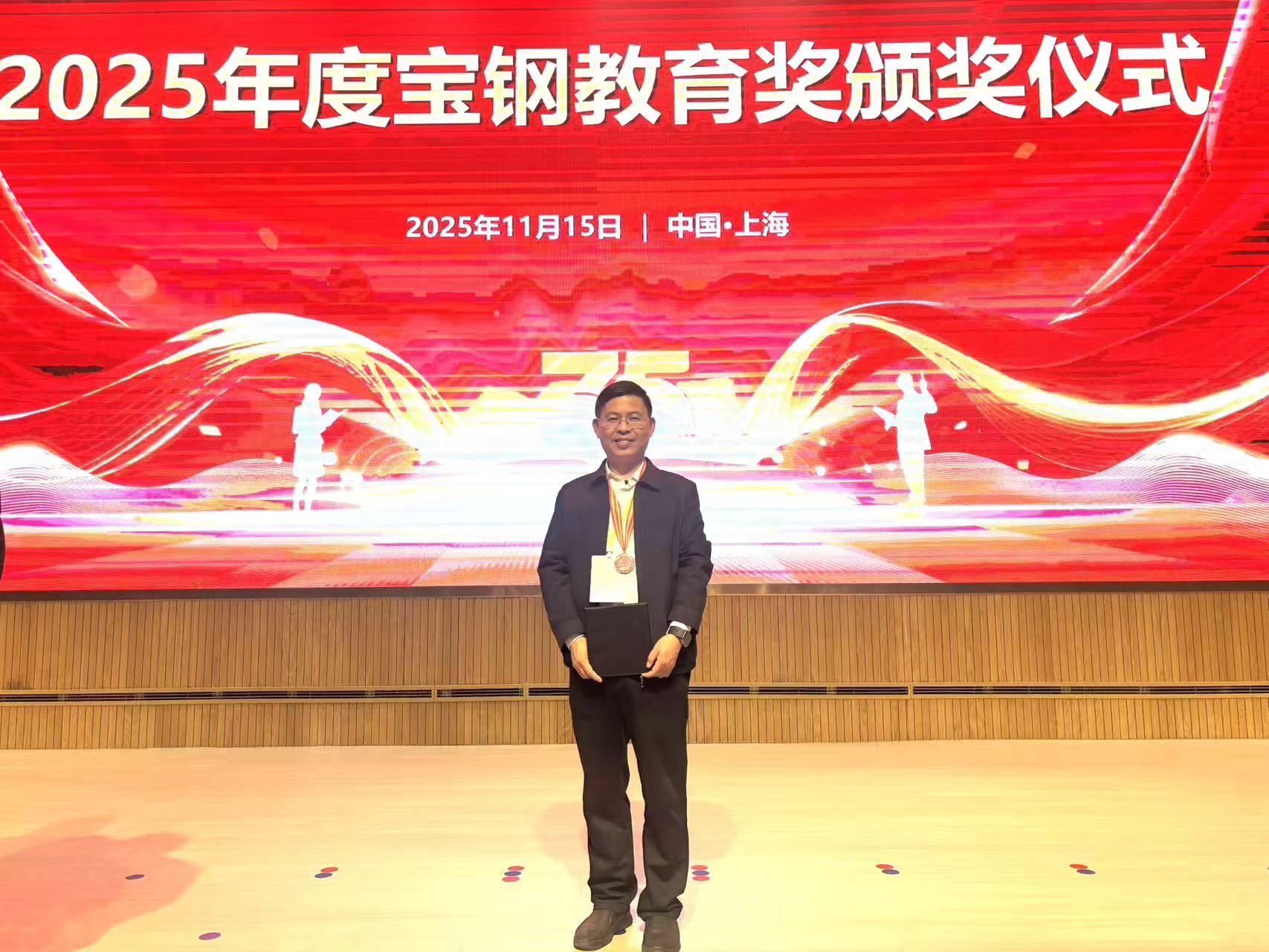 11月15日,2025年度“宝钢教育奖”颁奖仪式在上海隆重举行, 韩漫 王修华教授荣获“宝钢优秀教师特等奖提名奖”。