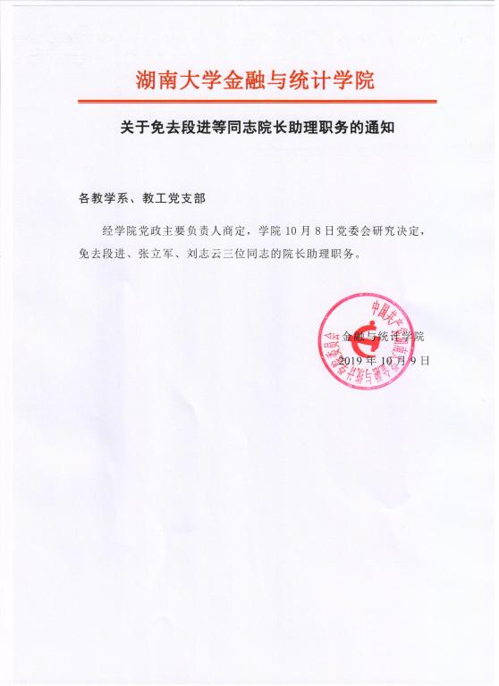 关于免去段进等同志院长助理职务的通知