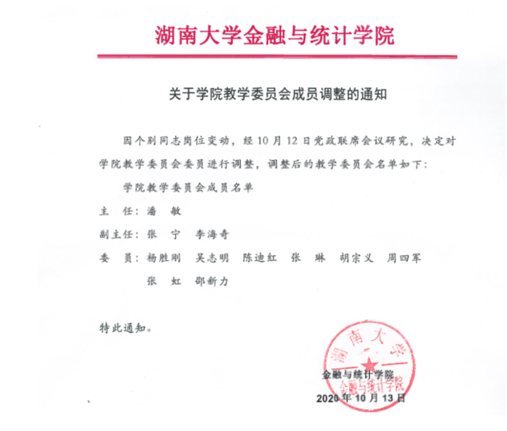 关于学院教学委员会成员调整的通知