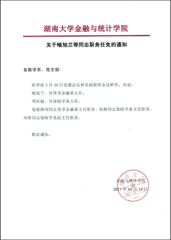 关于喻旭兰等同志职务任免的通知