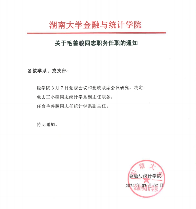 关于毛善骏同志职务任职的通知