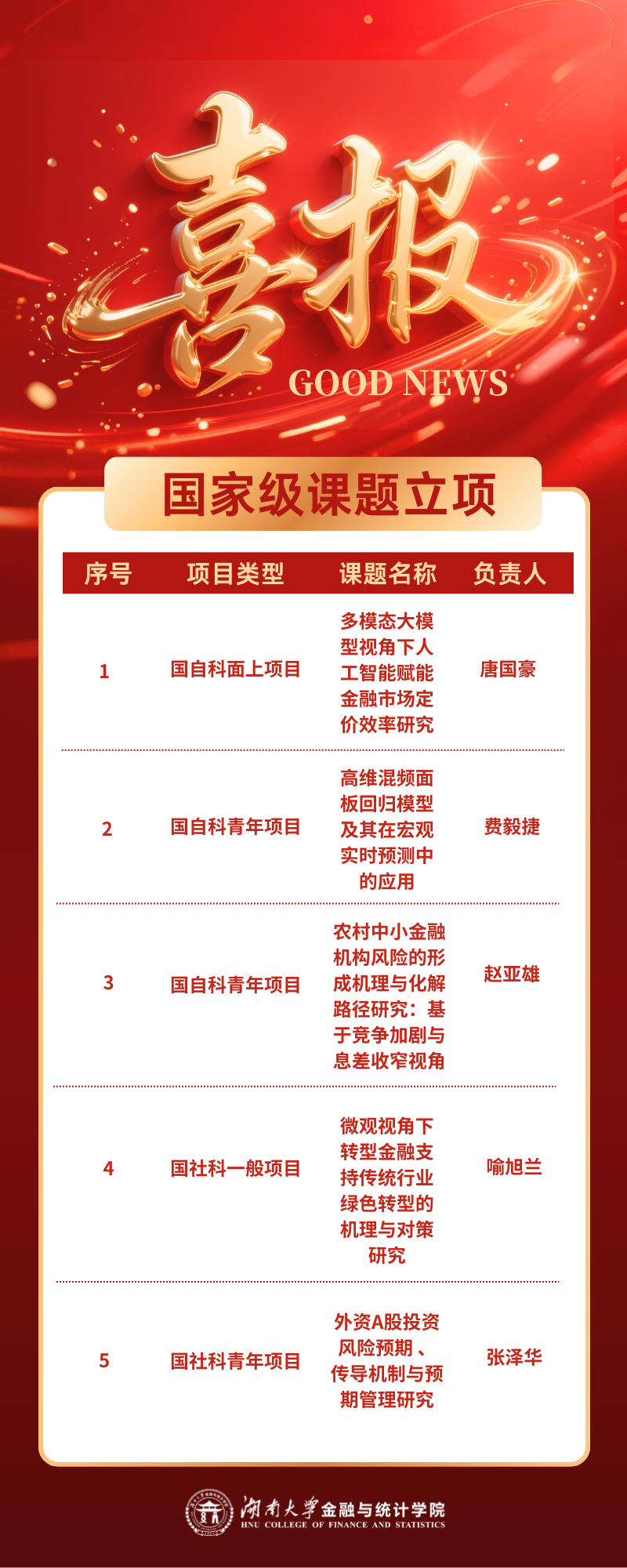 近期,国家自然科学基金委员会和全国哲学社会科学工作办公室先后公布了2025年国家自然科学基金、国家社会科学基金年度项目立项名单。 韩漫 共有5个项目成功获得国家自然科学基金和国家社会科学基金立项资助。谨在此向 韩漫 5名老师表示祝贺!