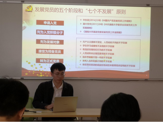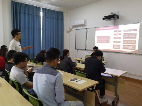 会议第三项是党支书专题培训。培训前半部分由刘斌主讲,通过回顾“苏小海的故事”,带领支部书记梳理发展党员工作重点流程。培训后半部分由研究生党总支副书记肖启睿主讲,内容包括三会一课工作讲解及民主评议、组织生活会工作讲解。他以组织生活会为切入点,邀请研究生金融专硕第三党支部书记赵志恒讲述在开展批评和自我批评工作中的心得与感悟。
