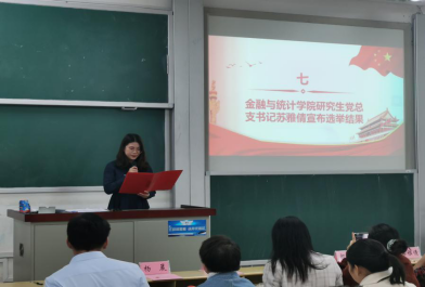 在选举环节,与会党员表决通过选举办法,并在候选人演讲完毕后依次投票。苏雅倩宣读选举结果,本次选举共发出选票237张,收回有效选票237张。会议选举周斌同志为新一届研究生党总支书记,选举邓晨露、李苇苇、李佳、李婷婷、汪宇涛、周芷薇、傅旭、蔡嗣杭、戴正本共9位同志为新一届研究生党总支委员。