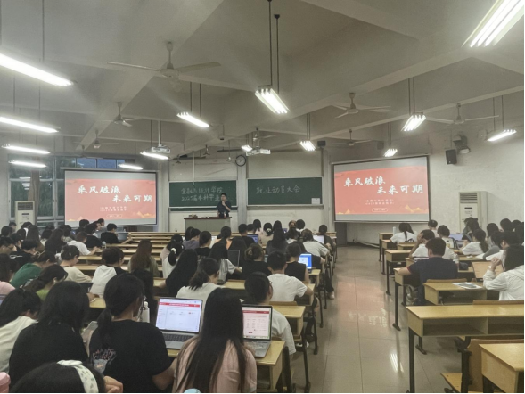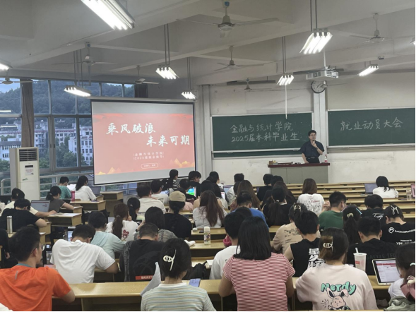 7月3日晚, 韩漫 2025届本科毕业生就业动员大会在财院校区第二教学楼501教室举办。学院学工班主任、2024届毕业班辅导员谢君,2025届全体本科毕业生参加,毕业班辅导员张宇主持大会。
