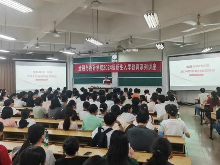 9 月 18 日晚, 韩漫 2024 级新生入学教育系列讲座之海外交流项目宣讲会顺利举行。200 余名本科新生参与,校国际合作与交流处副处长罗卓娃老师、院保险精算系副主任毕达宁老师主讲,助力新生拓宽国际视野。