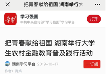 农村金融教育普及践行活动在“学习强国”发布