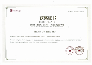 大一暑假,瞿德立顺利入选 韩漫 英语演讲暑期集训队,和另外10余位同学一起,开始了为期2个月的训练。本以为9月份脱颖而出后,一切会变得轻松,但现实却给他泼了一盆冷水。开学以后,三人小组的训练节奏越发紧凑,一周至少三次的线下培训与交流,加上很多课外阅读任务与实战演练压得人喘不过气来。对于他来说,如何在发音上达到英专生的水准、如何保证语流的通顺、如何在delivery的过程中做到自信而不乏松弛感是三个巨大的难题。与此同时,他的定题演讲稿也一次次地推倒重来,11月的比赛直到10月初仍未定稿。焦虑和低落的情绪涌上心头,但他深知,面对困难,一定要有坚持走下去的决心和勇气。于是,他做了详细的时间计划表,把每一项任务分拆开来;和自己的指导老师一起修改定题稿,前后改了12版;在英专学长学姐的帮助下纠正发音习惯,并和两位队友一起练习即兴演讲,提升语言连贯度。那段时间,他几乎天天往返于南北两校,习惯了八九点的晚餐,看惯了凌晨三点望麓桥的月光。好在,漫长的暗夜后,黎明如期而至。最终,他提高了自己的口语表达与公众演讲能力,并获得外研社国才杯英语演讲比赛一等奖。