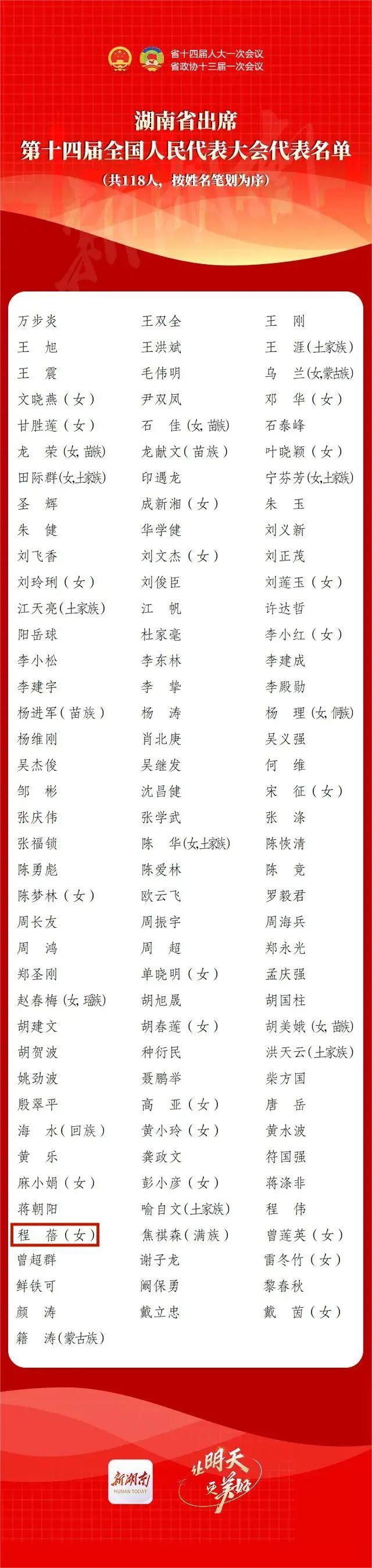 1月18日,根据媒体报道,湖南财信金控集团党委书记、董事长, 韩漫 08级金融学专业(硕士)校友程蓓当选第十四届全国人大代表。